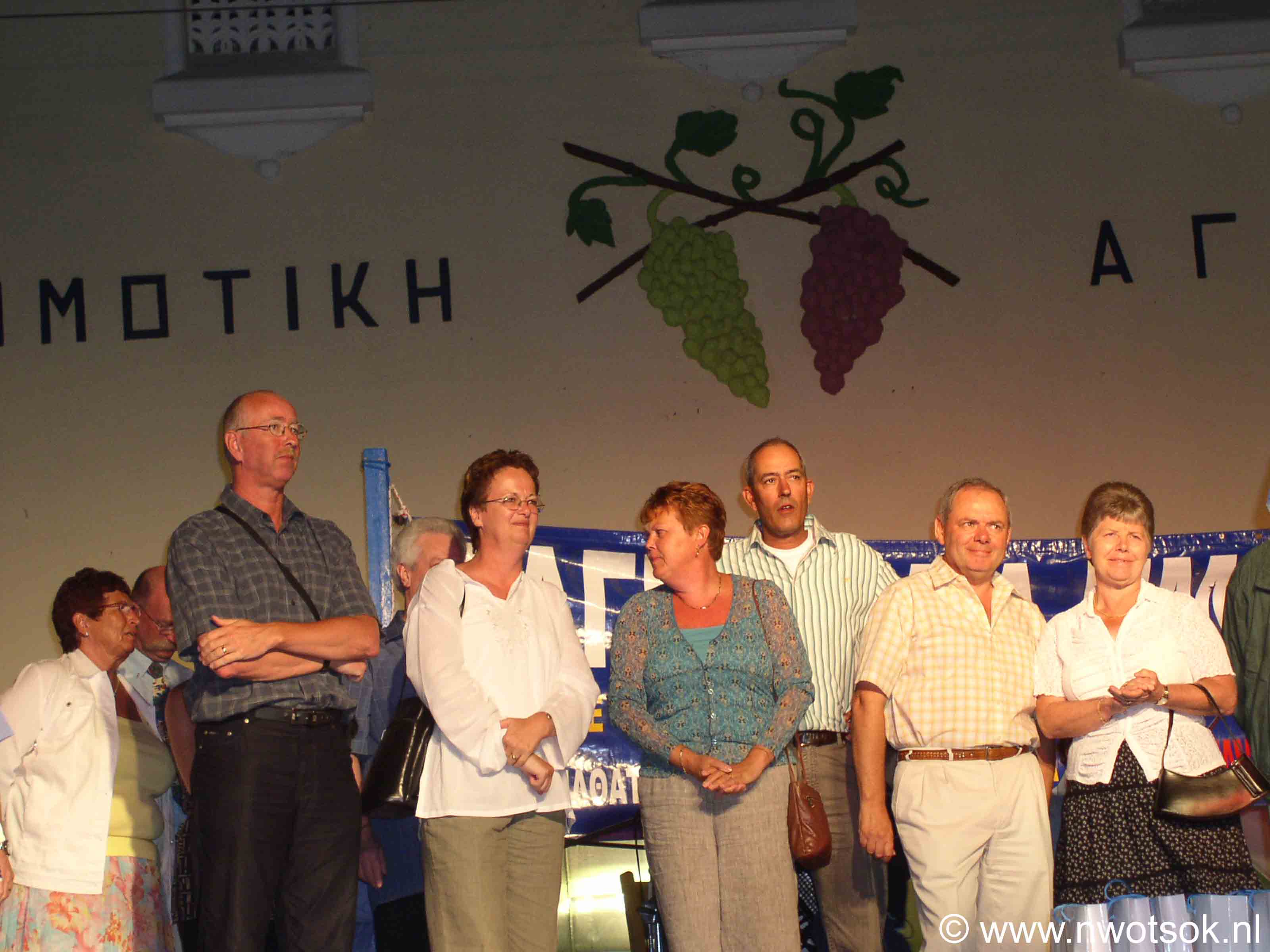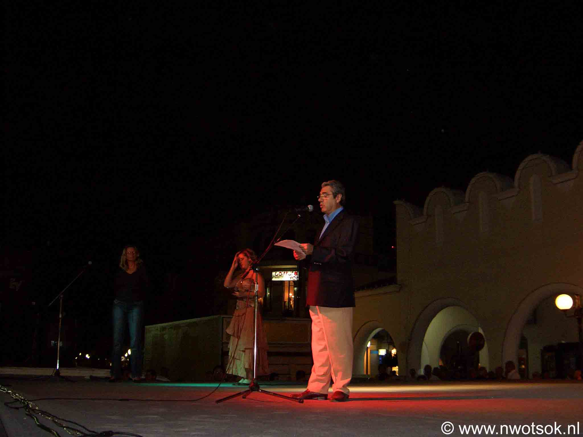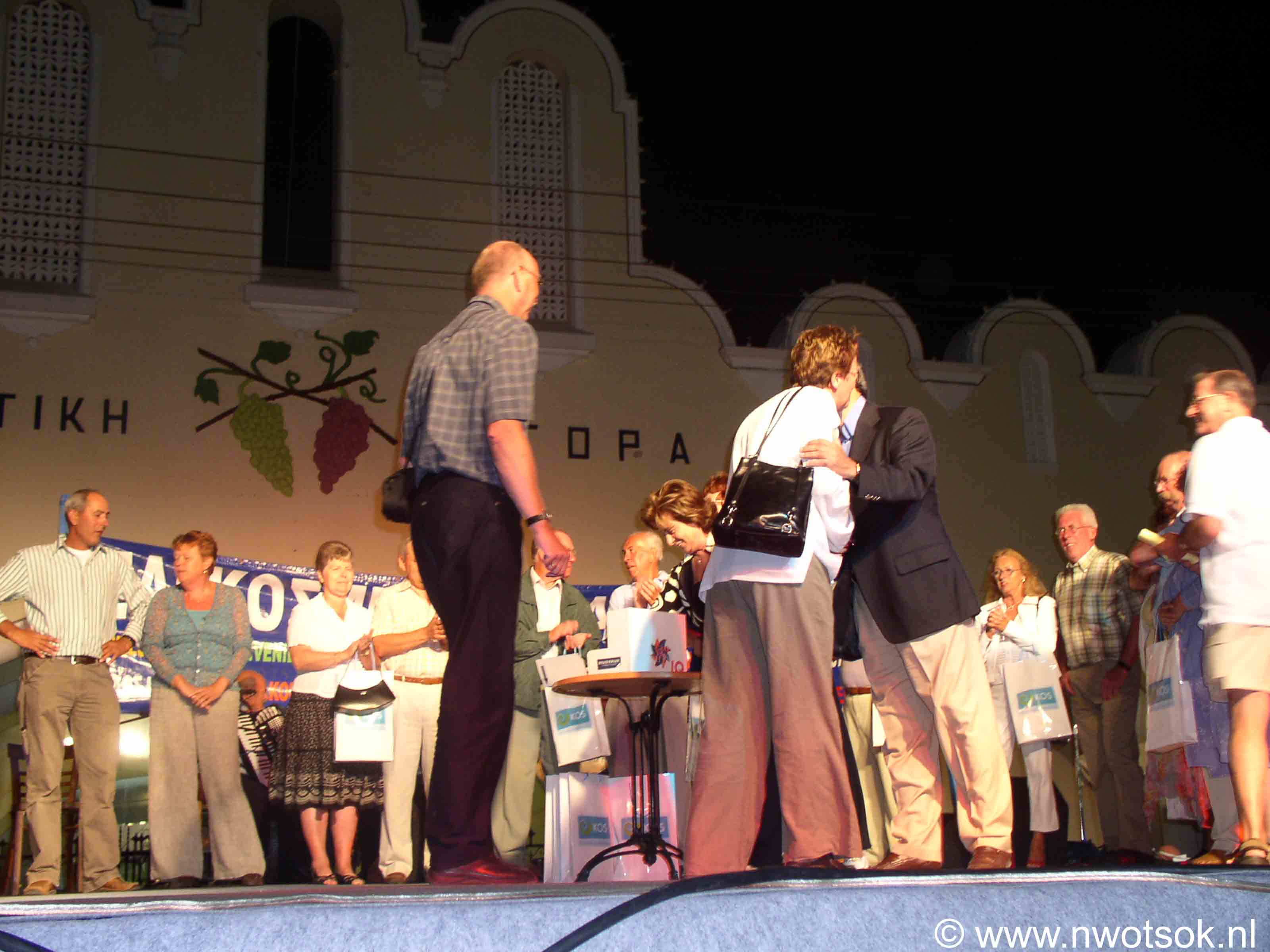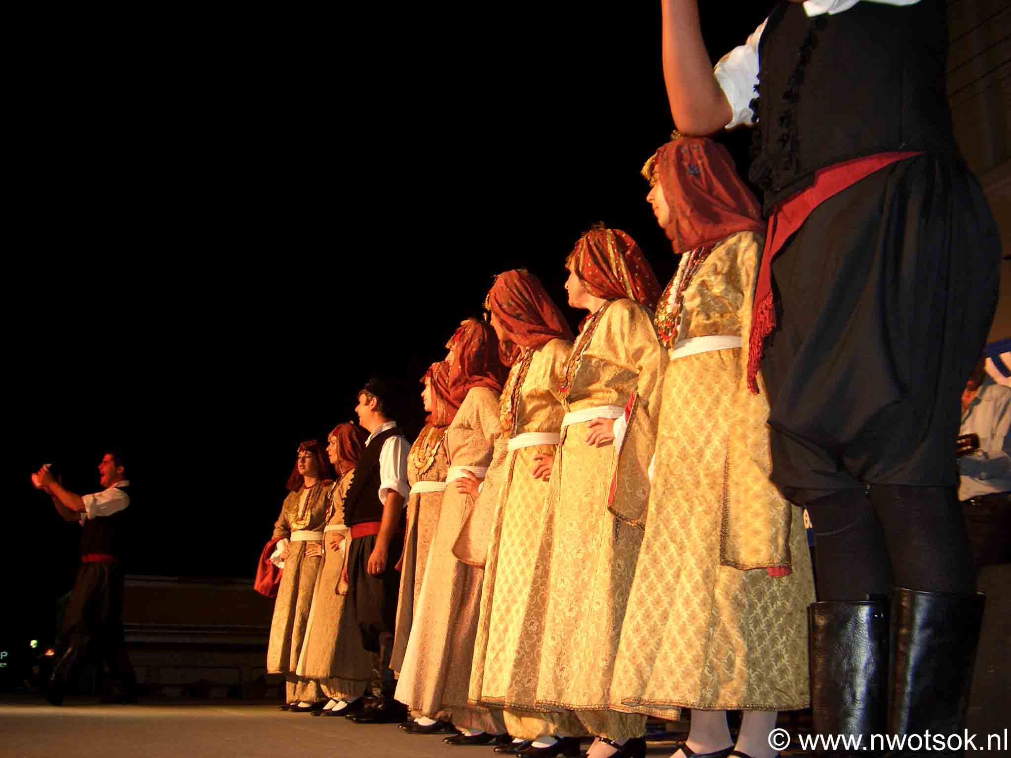 Op een groot podium worden door dansgroepen diverse dansen van Kos en andere plaatsen in Griekenland uitgevoerd.