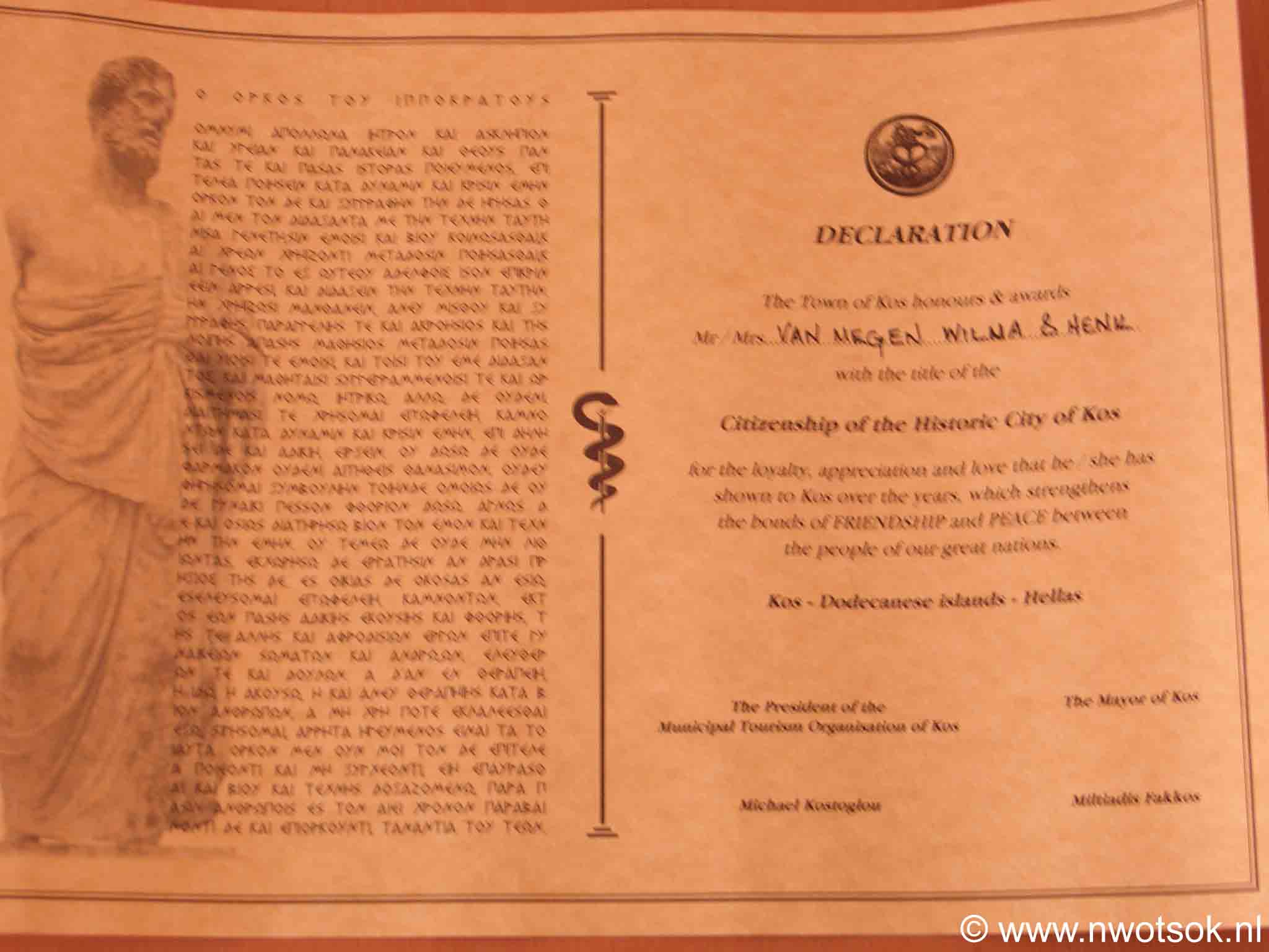 In 2005 was het voor de eerste keer dat het uitreiken van het certificaat van Burgerschap van de Historische Stad Kos onderdeel van deze festiviteiten uitmaakte. Vakantiegangers die al vele malen op Kos zijn geweest, kunnen door inwoners van Kos worden voorgedragen voor dit Burgerschap.